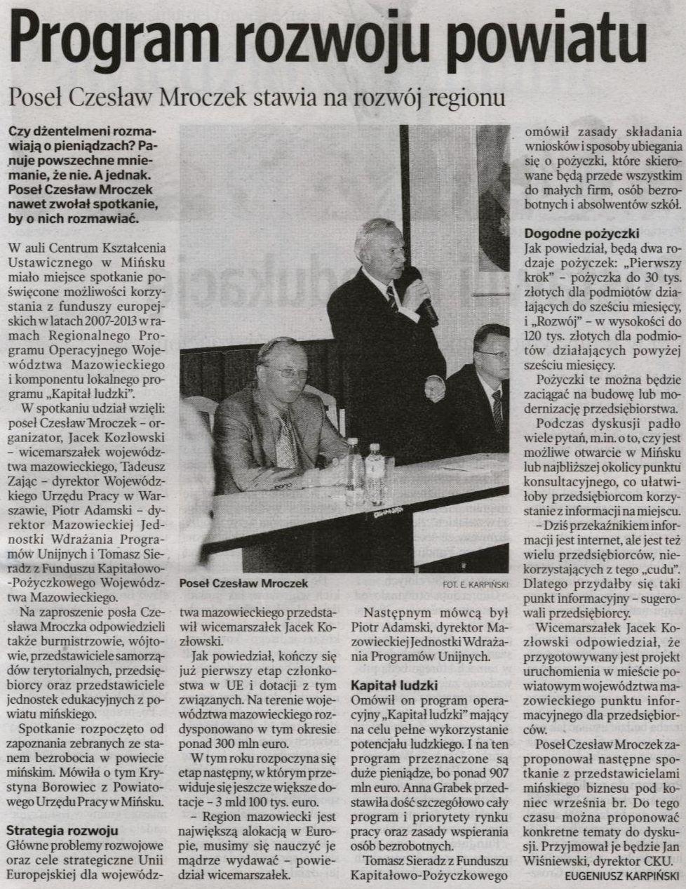 Poseł Czesław Mroczek organizatorem spotkania nt. funduszy unijnych