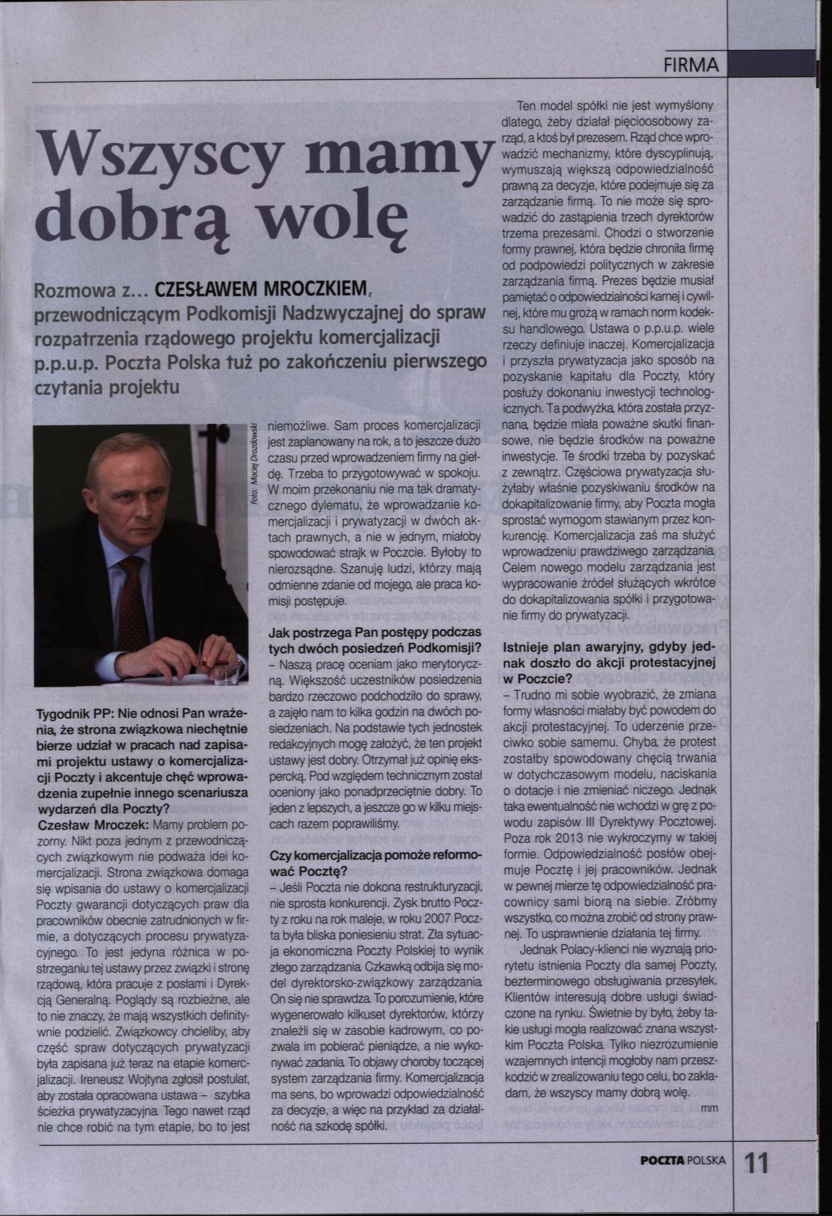 Rozmowa z posłem Czesławem Mroczkiem, przewodniczącym Podkomisji Nadzwyczajnej do spraw rozpatrzenia rządowego projektu komercjalizacji p.p.u.p. Poczta Polska