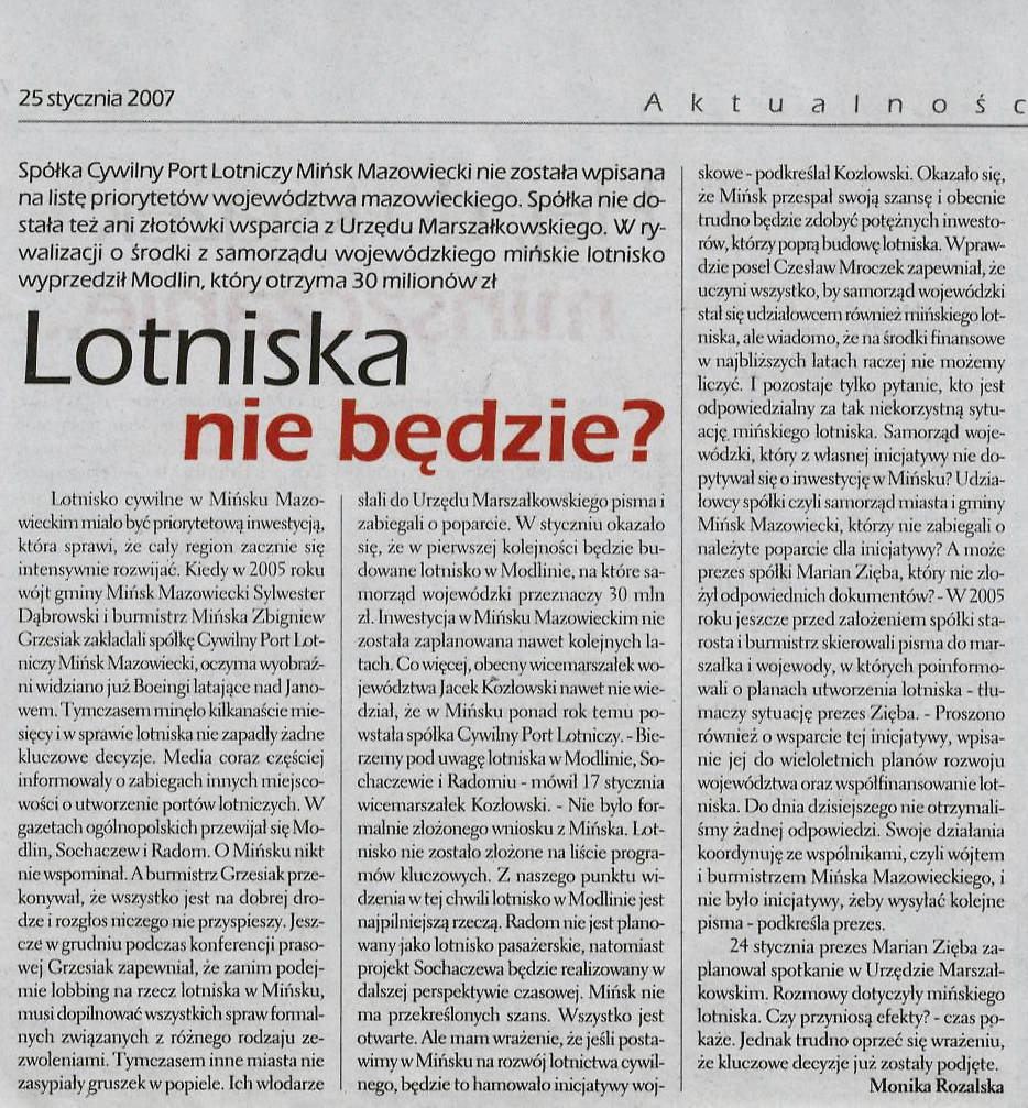 Lotniska nie będzie?